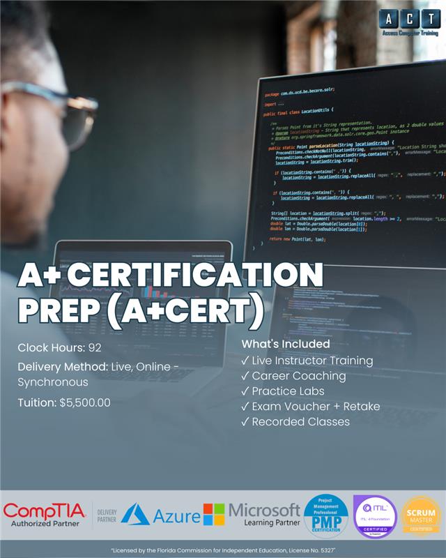 “I took the Access Computer Training A+ course in January of 2022. Because of Covid19 we did everything online, but it was like you were in the classroom. My instructor, Mike, was a great teacher. He explained all the chapters in the A+ Certification Guide to a point where I understood it very well. While I was studying to take the exam I found an ad on a website for a help desk level 1 person. I figured I’d go in take the interview and see how good I would be before I took the exam. To my surprise I did very well. I was very familiar with the questions and the test they gave me. I got the job even though I didn’t take the exam yet. All thanks to Mike’s great teaching. Now I am still studying to take the exam even though I have the job and they put me at a level 2 help desk tech. I must say working with Kristin Pelletier and Mike McQuain was very good. They helped me with any problem I had and the group I was in was great and helpful too.”